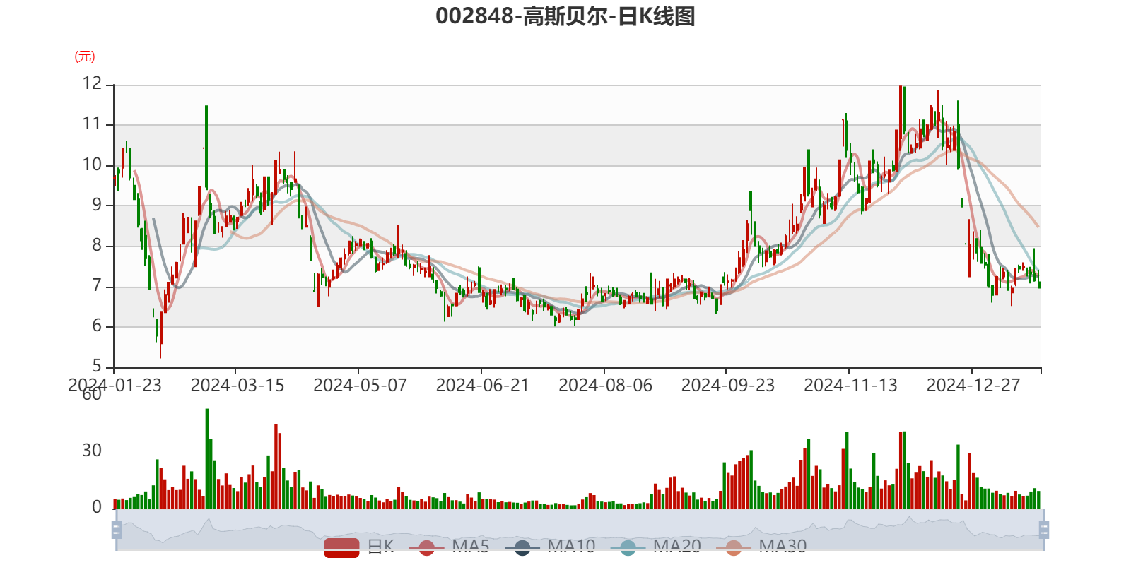 中证智能财讯高斯贝尔(002848)1月22日晚间披露2024年度业绩预告,预计2024年实现营业收入1.33亿元至1.5亿元;归母净利润亏损1.08亿元至1.4亿元,上年同期亏损8211.45万元;扣非净利润亏损1.15亿元至1.47亿元,上年同期亏损9852.19万元;基本每股收益-0.6461元/股至-0.8376元/股。以1月22日收盘价计算,高斯贝尔目前市盈率(TTM)约为-8.32倍至-10.79倍,市净率(LF)约10.59倍,市销率(TTM)约8.23倍。